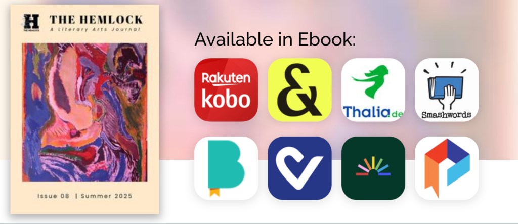 Note : • Currently, We are Accepting submissions for The Hemlock Antholgy : Volume Two. Click Here to Submit. • Submissions for Issue 09 (Winter 2026) Opens 15th October.
