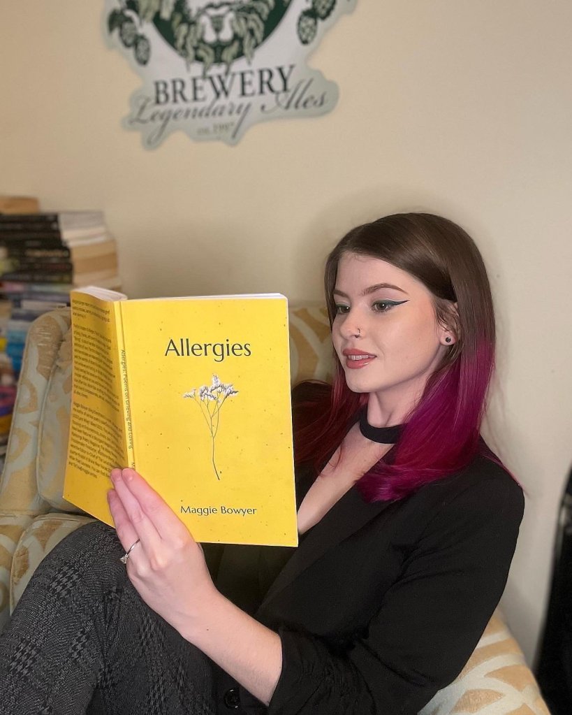 Maggie Bowyer (they/them/theirs) is a poet, cat parent, and the author of various poetry collections including ‘Allergies’ (2023) and ‘When I Bleed’ (2021). They are an essayist focusing on Endometriosis, chronic pain, and trauma, and have been featured in Bourgeon Magazine, Capsule Stories, Plainsongs Poetry Magazine, The Abbey Review, Troublemaker Firestarter, Wishbone Words, and more. They were the Editor-in-Chief of The Lariat Newspaper, a quarter-finalist in Brave New Voices 2016, and a Marilyn Miller Poet Laureate. You can find their work on Instagram and TikTok @maggie.writes